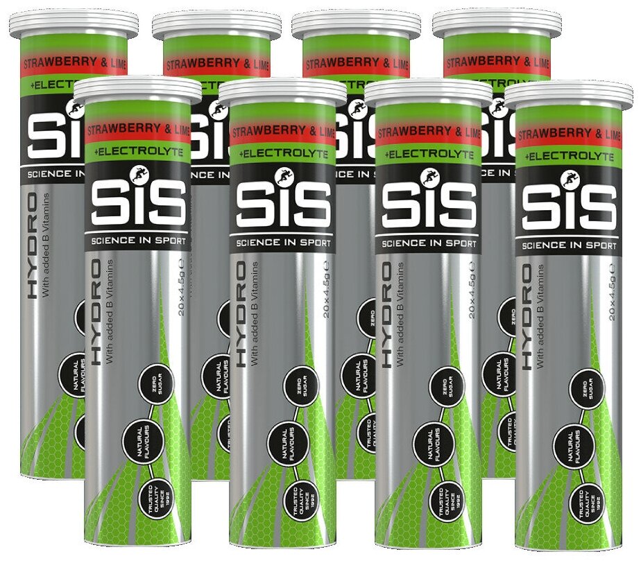 Изотоник SCIENCE IN SPORT (SiS) GO Hydro Tablet 20s 8 x 20 таблеток, Клубника - Лайм