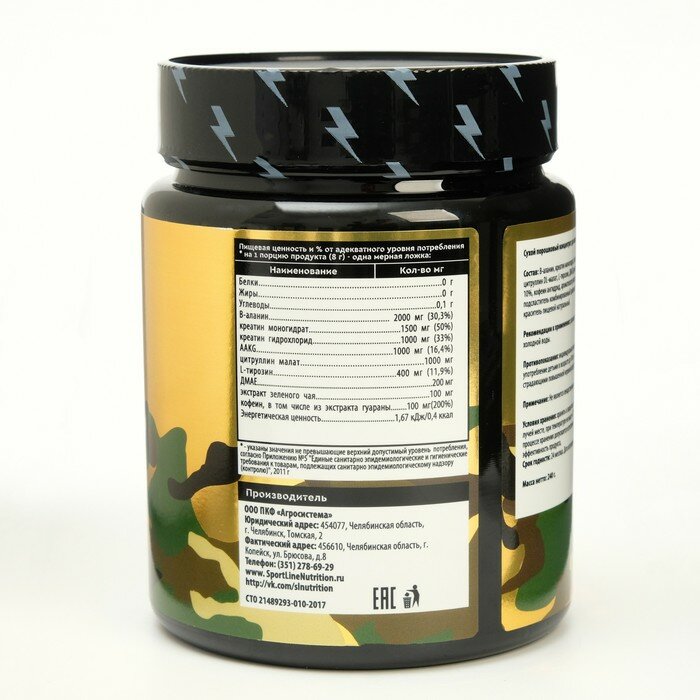Купить SportLine Предтренировочный комплекс SportLine Nutrition T-34, адреналин, спортивное питание, 240 г