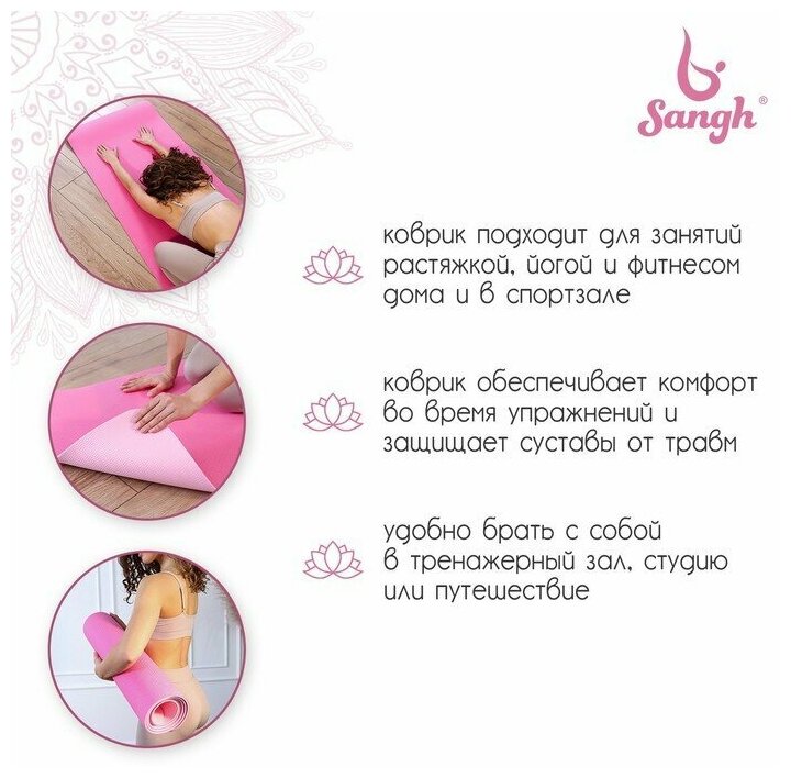 Купить Коврик для йоги 183 х 61 х 0,6 см, двухцветный, цвет розовый Sangh 5243894 .