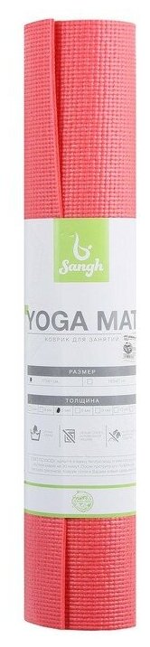 Коврик для йоги Sangh Yoga mat, 173х61х0.5 см розовый однотонный интересное: