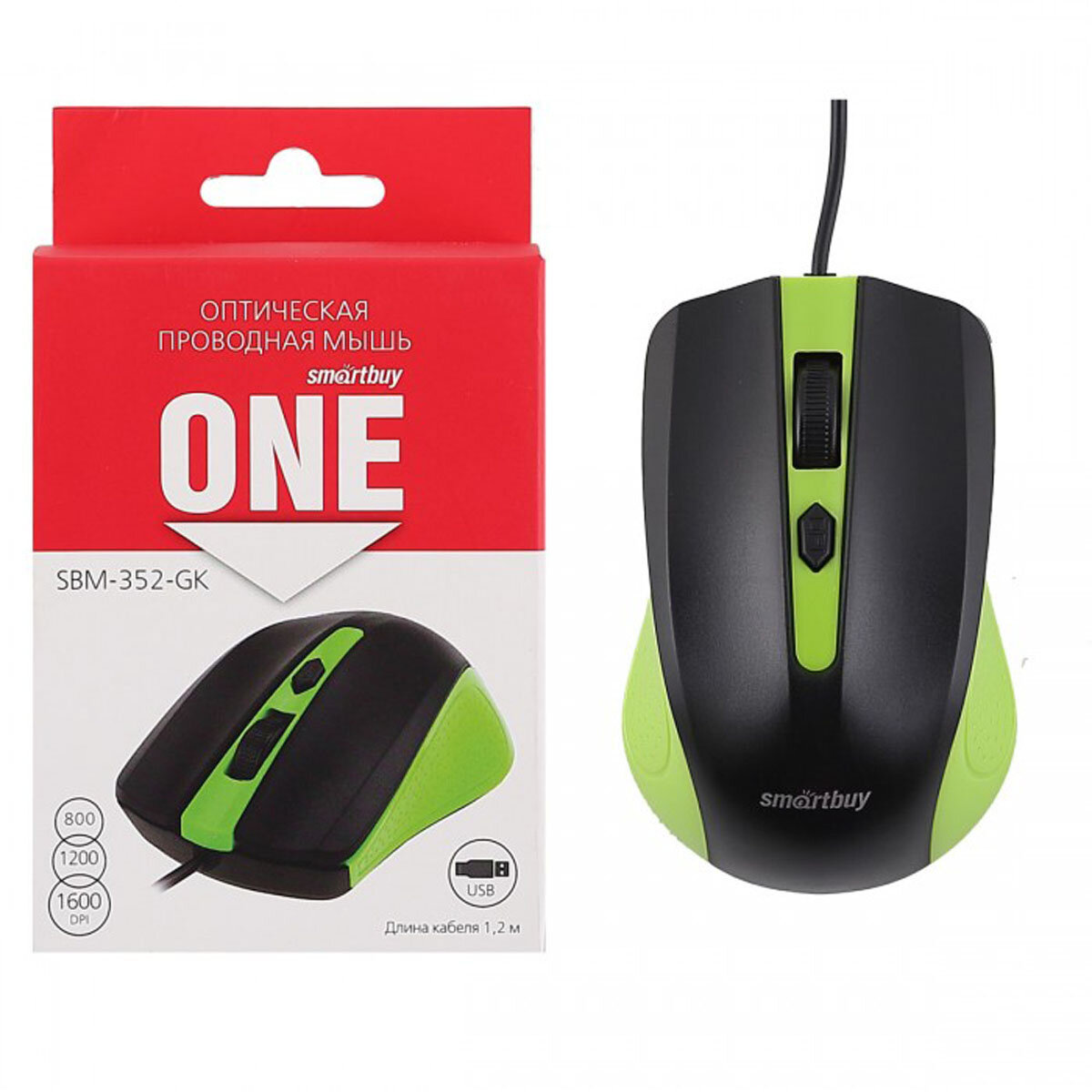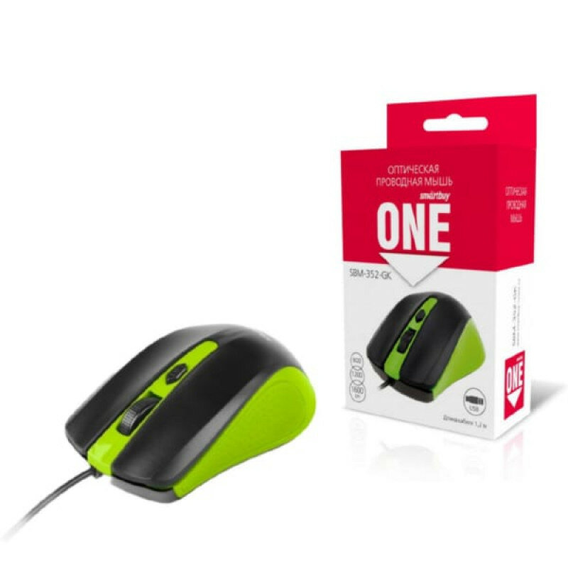 Мышь Smartbuy ONE 352, USB, зеленый, черный, 3btn+Roll
