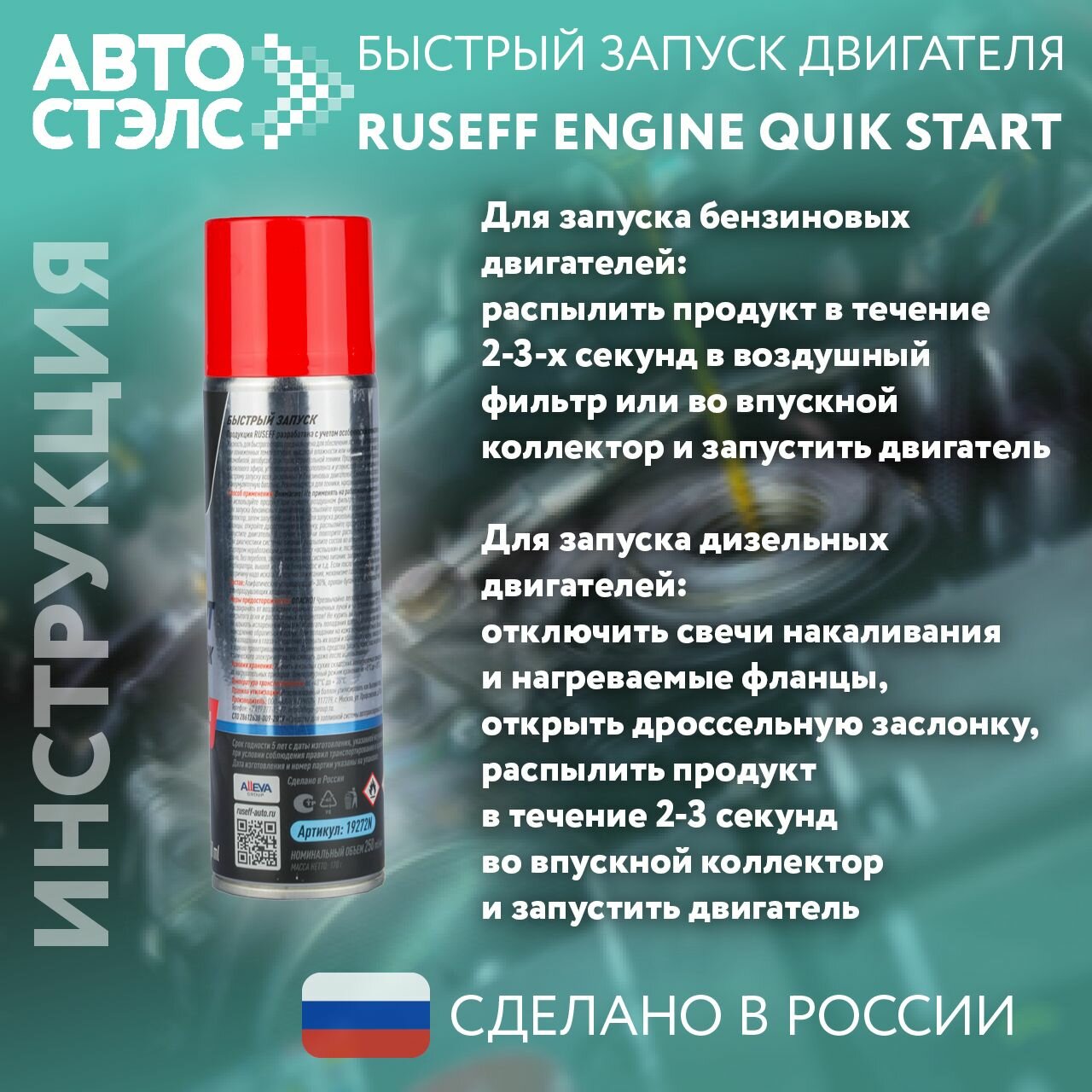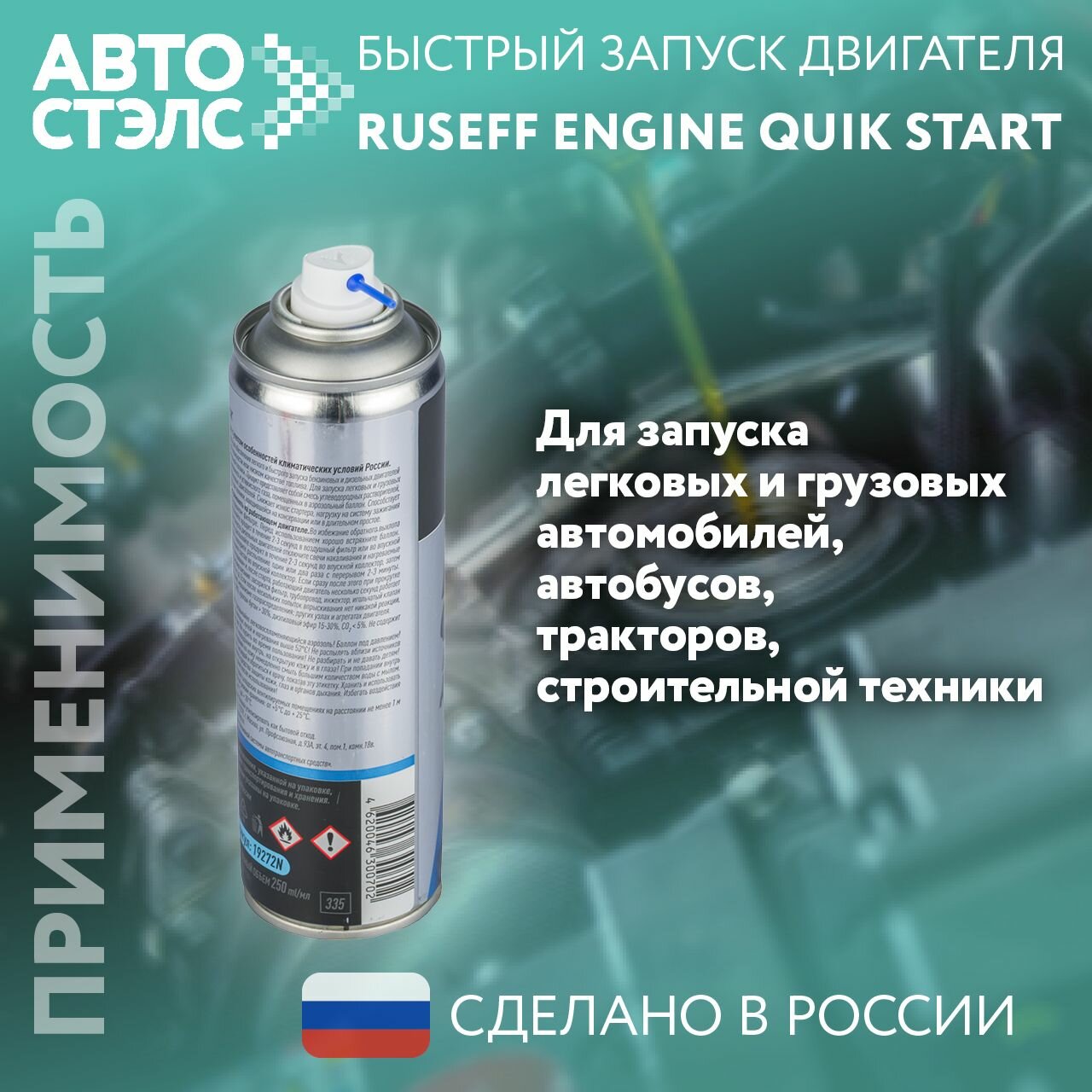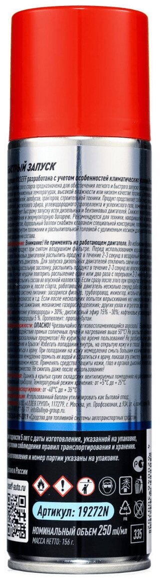 Быстрый запуск двигателя 250 мл (аэрозоль/баллон 335 мл) RUSEFF, арт. 19272N