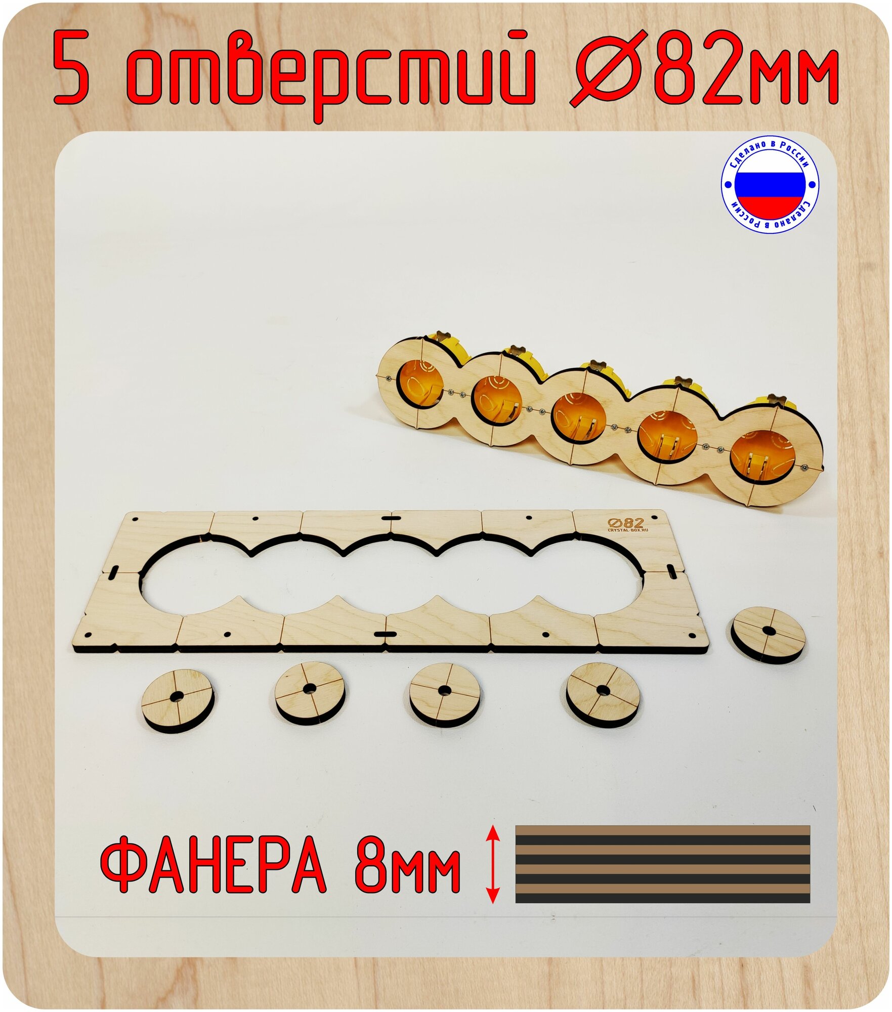 Шаблон для сверления и установки подрозетников на 5 отверстия, диаметром 82 мм, толщина 8 мм, Межцентровое расстояние 71мм. интересное: