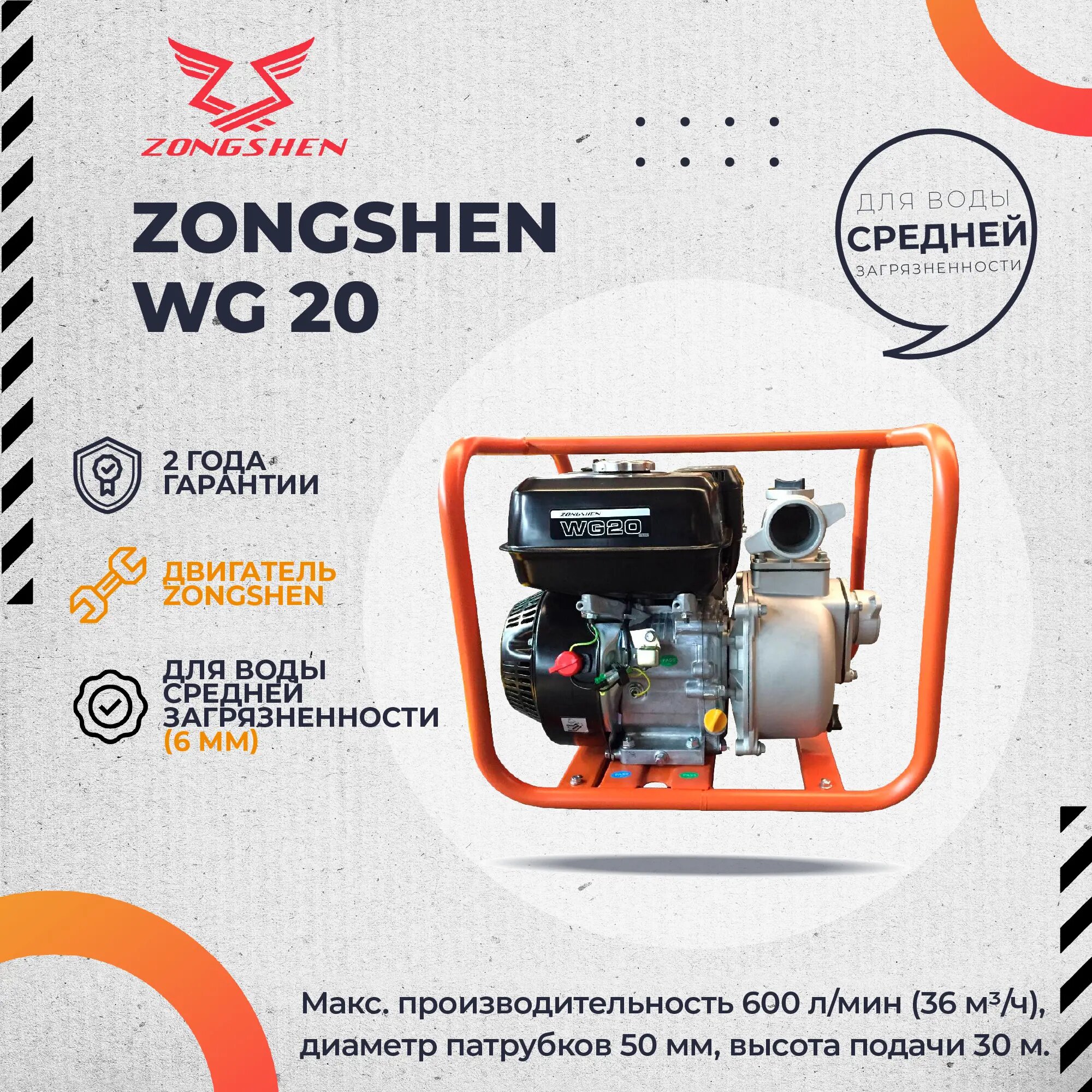 Мотопомпа бензиновая ZONGSHEN WG 20 интересное: