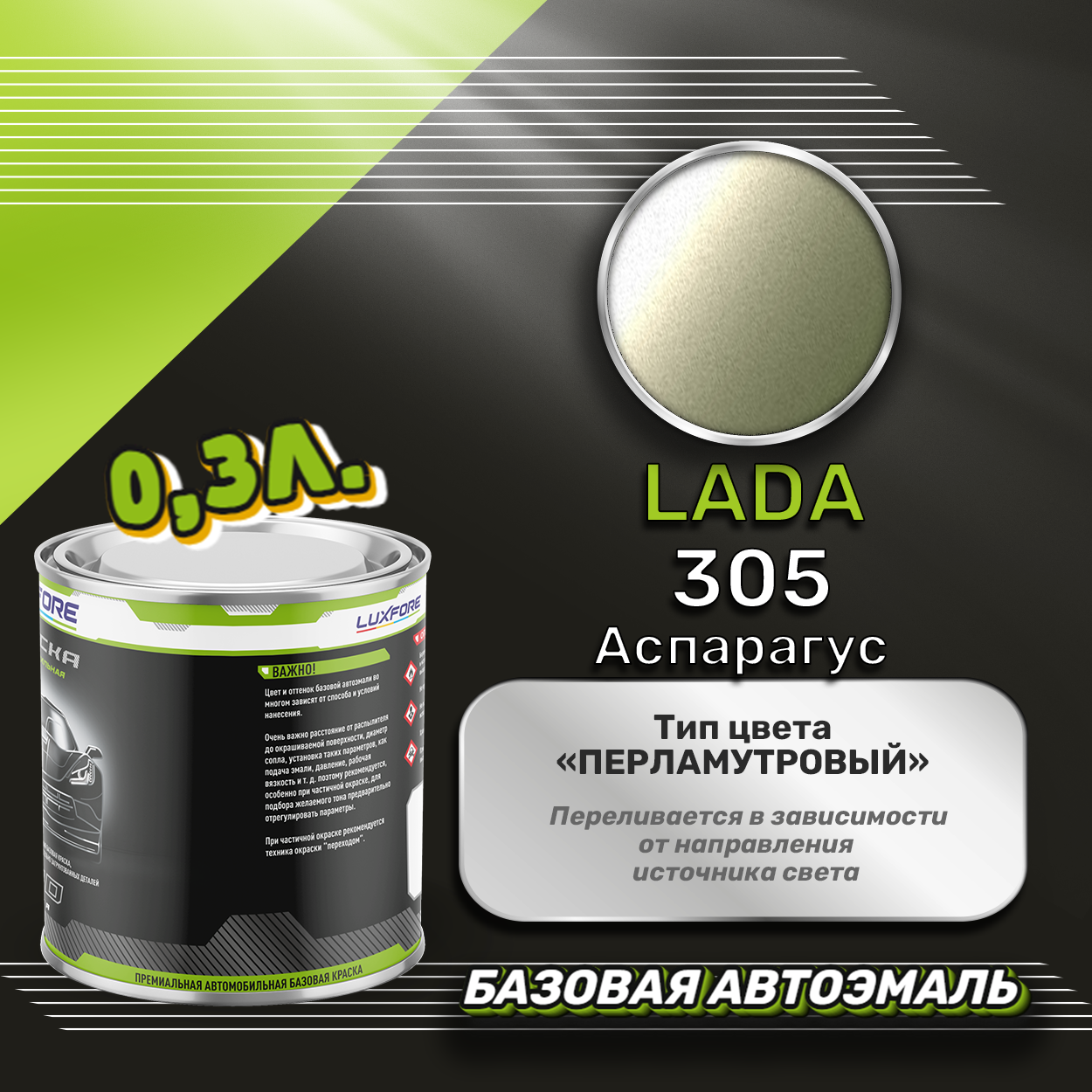 Купить Luxfore краска базовая эмаль LADA 305 Аспарагус 300 мл