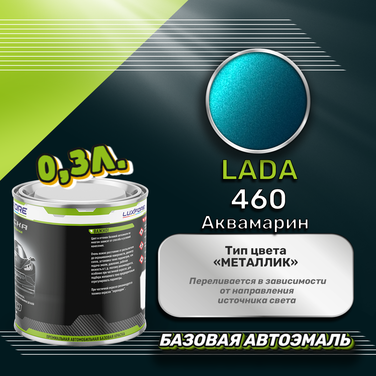 Luxfore краска базовая эмаль LADA 460 Аквамарин 3000 мл