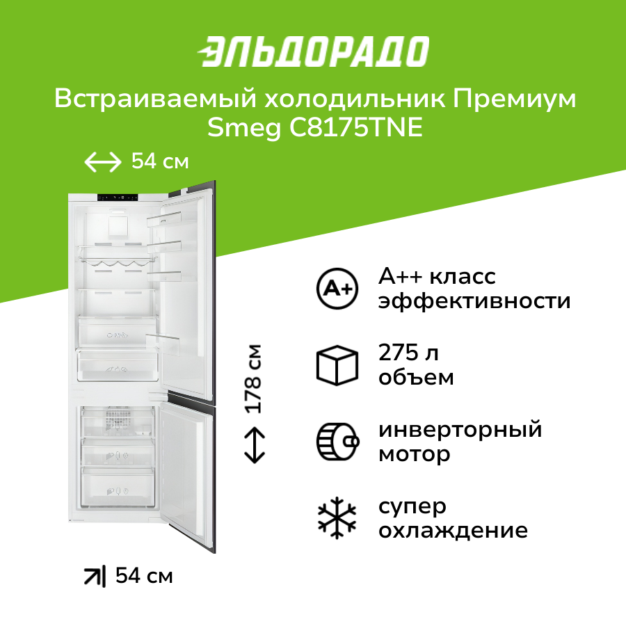 Встраиваемый холодильник комби Премиум Smeg C8175TNE