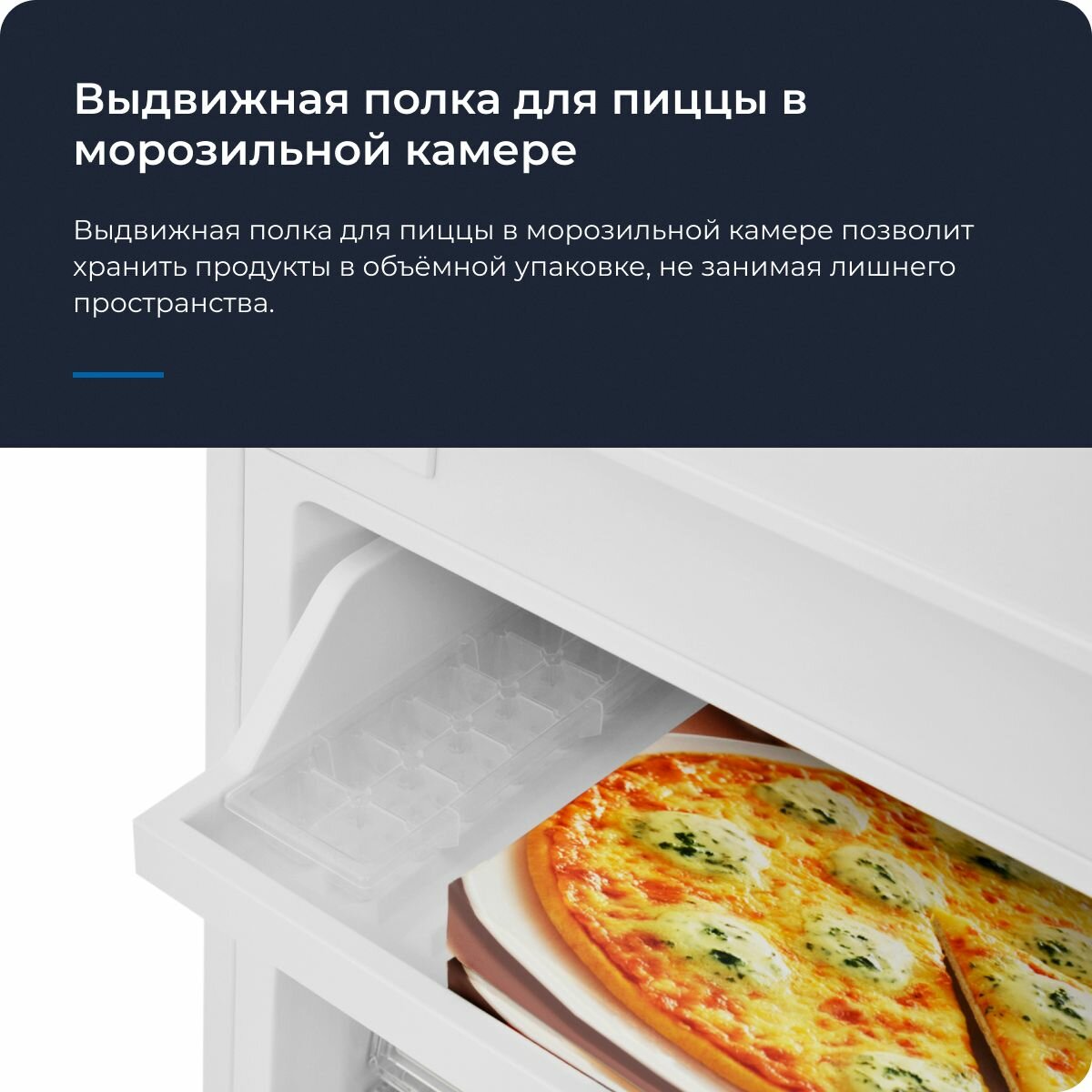 Приятный дизайн Класс А+ Вместительный Есть зона свежести Быстро замораживает лед No frost Отличное соотношение цены-качества Радует наличие выдвижной полки в морозильной камере для пиццы или бутылок |