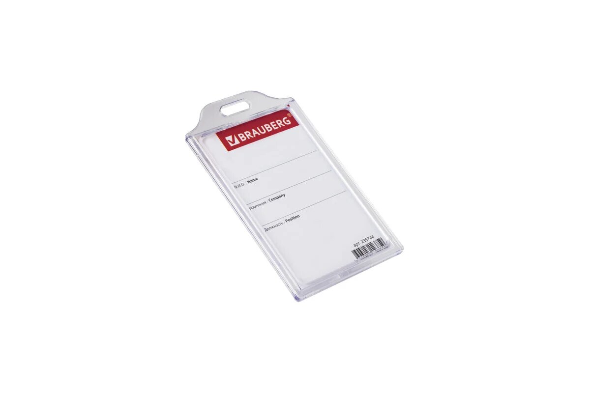 Купить Бейдж вертикальный жесткокаркасный (85х55мм), без держателя, прозрачный, BRAUBERG, 235744
