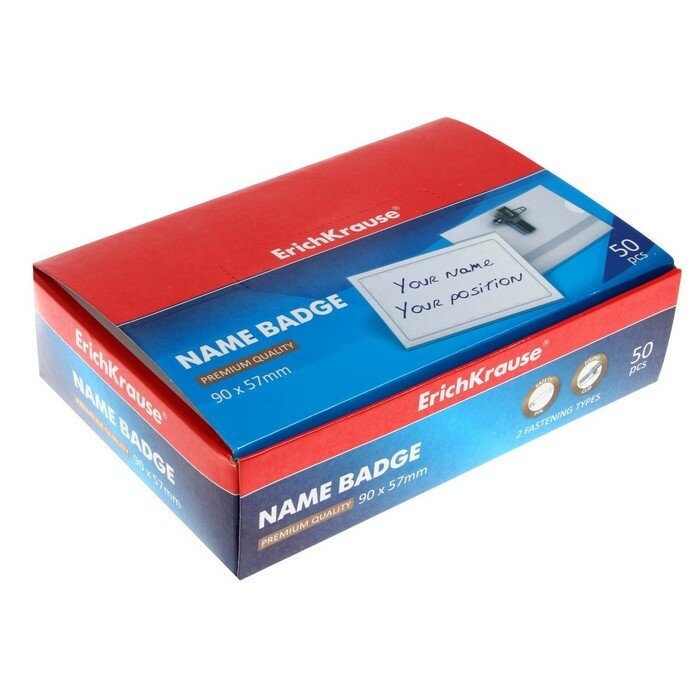 Бейдж горизонтальный 90х57мм ErichKrause, пластик, с металлическим зажимом и булавкой интересное: