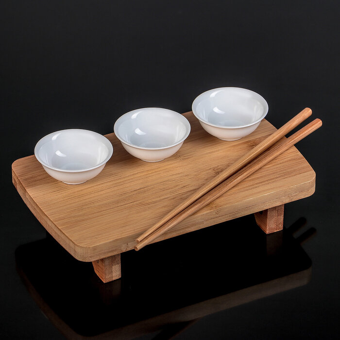 Купить Доляна Набор сервировочный Доляна «Эстет», 5 предметов: палочки 2 шт, соусники 3 шт, на деревянной подставке