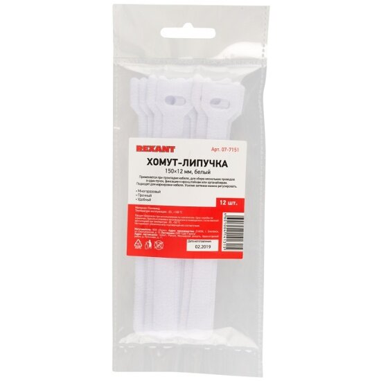 Хомут–липучка многоразовый REXANT 150х12 мм, белый 12 шт. интересное:
