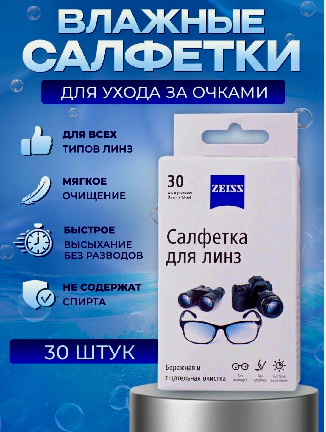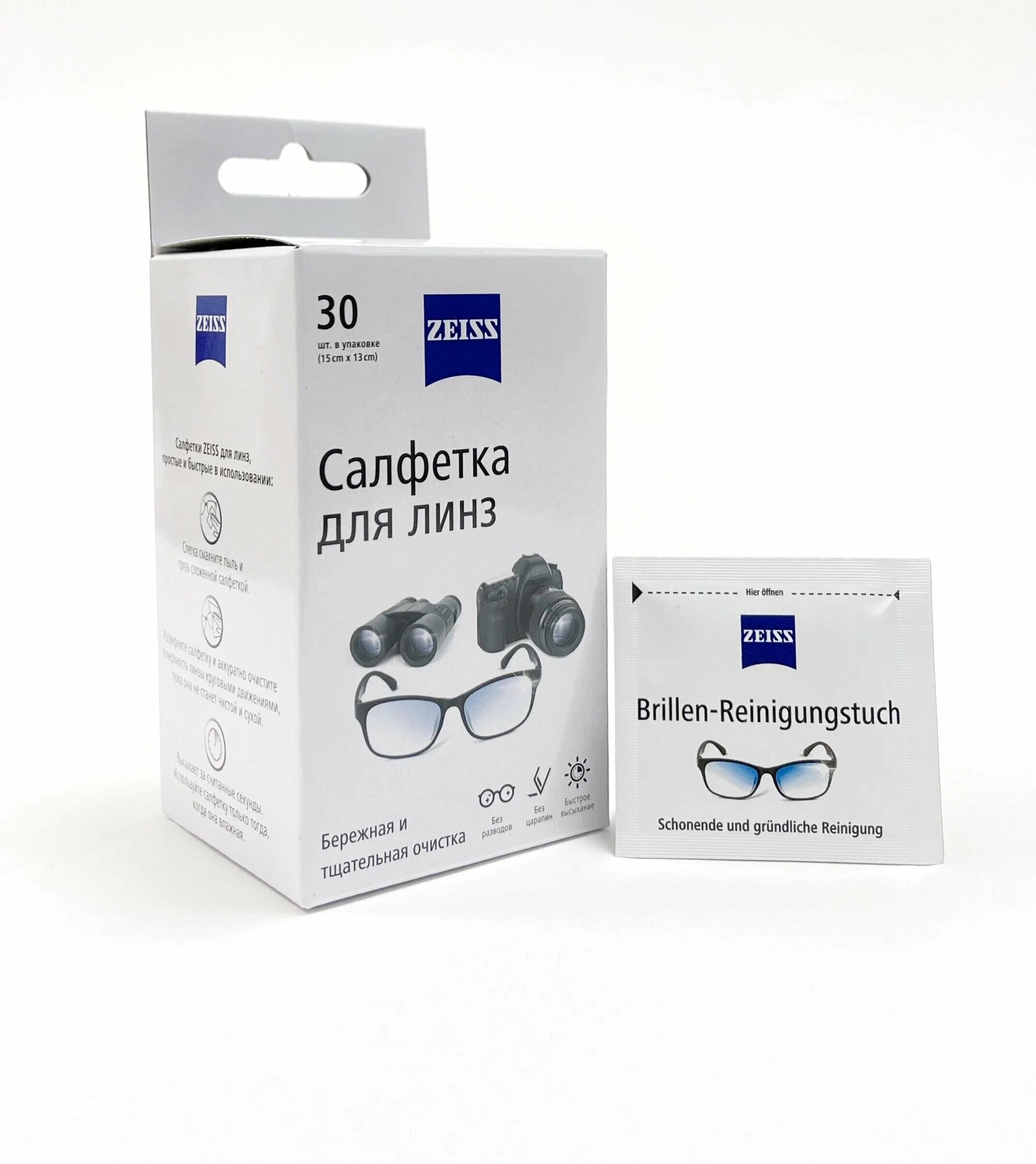 Влажные салфетки Carl Zeiss для очистки очков, оптики, линз, 30 штук без спирта интересное: