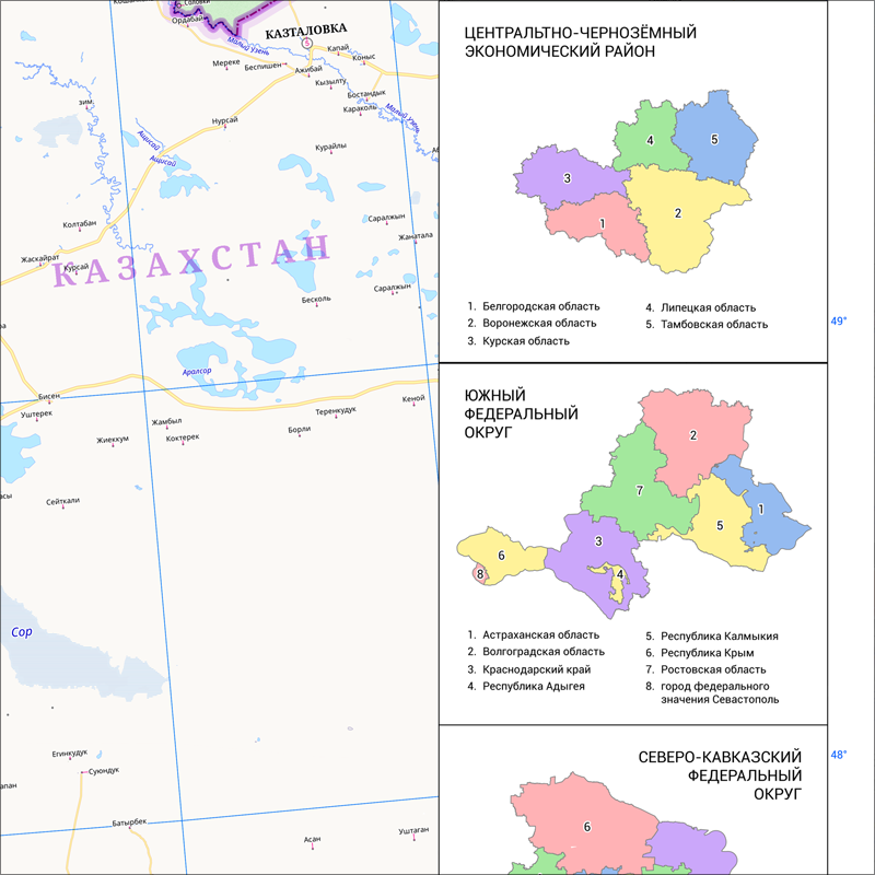 настенная карта Южного, Северо-Кавказского федерального округа и Черноземья 165 х 150 см (на баннере) интересное: