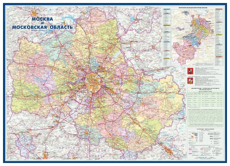 атлас-принт Настенная Административная карта Московской области 1:280/размер 146х102см на рейках интересное: