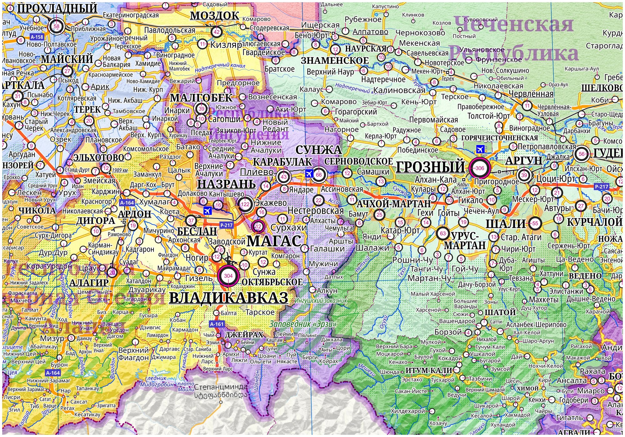 Настенная карта Южного и Северо-Кавказского фед. округа 165 х 150 см (на самоклеющейся пленке) интересное: