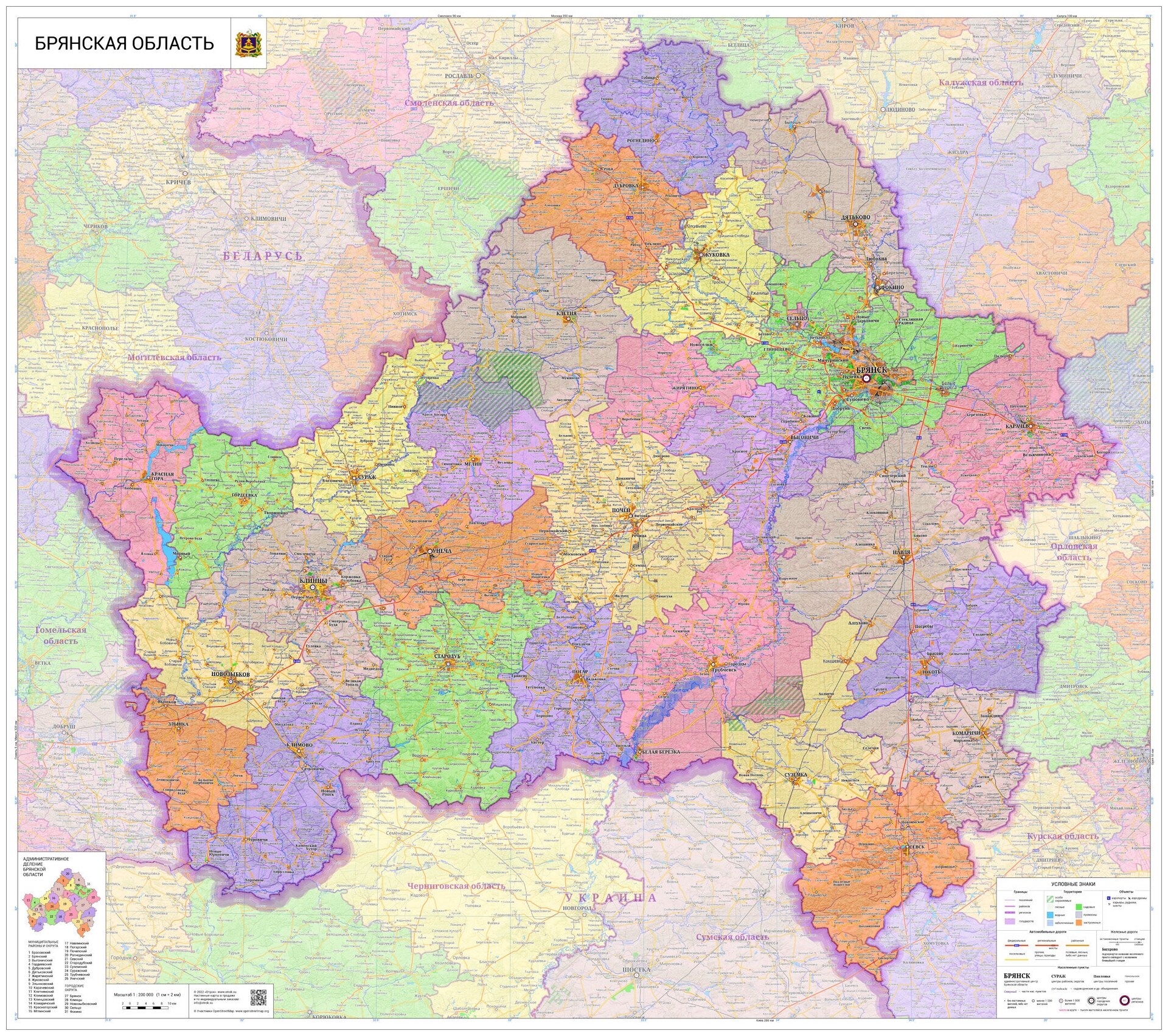 настенная карта Брянской области 132 х 149 см (на самоклеющейся пленке) интересное:
