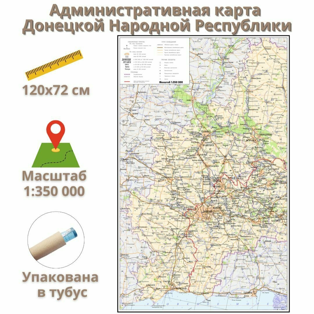 Административная карта Донецкой Народной Республики 120х72 см, 1:350 000 GlobusOff интересное: