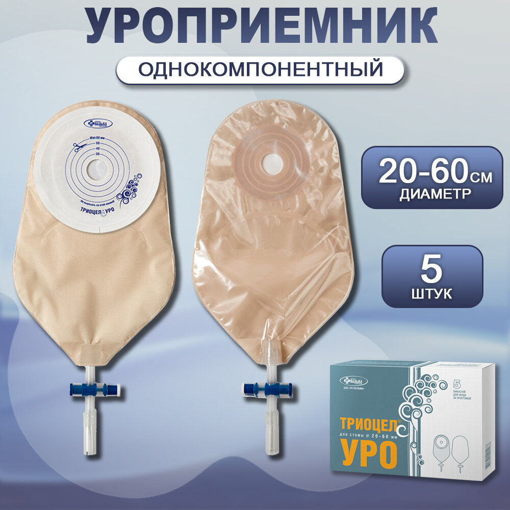 Уроприемники однокомпонентные триоцел-уро для стомы 20-60 мм, 5 штук