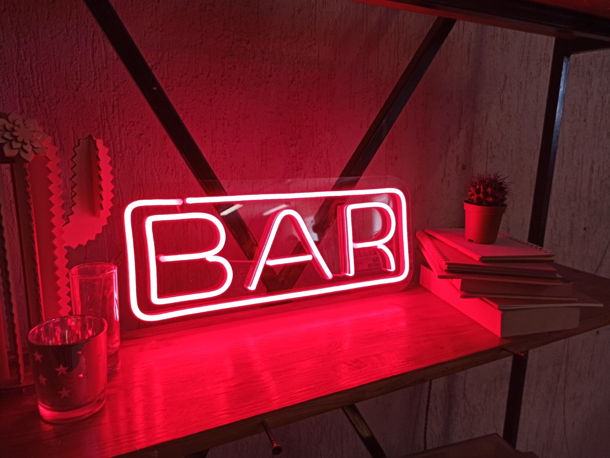 Вывеска светодиодная неоновая Bar, 40х10 см интересное: