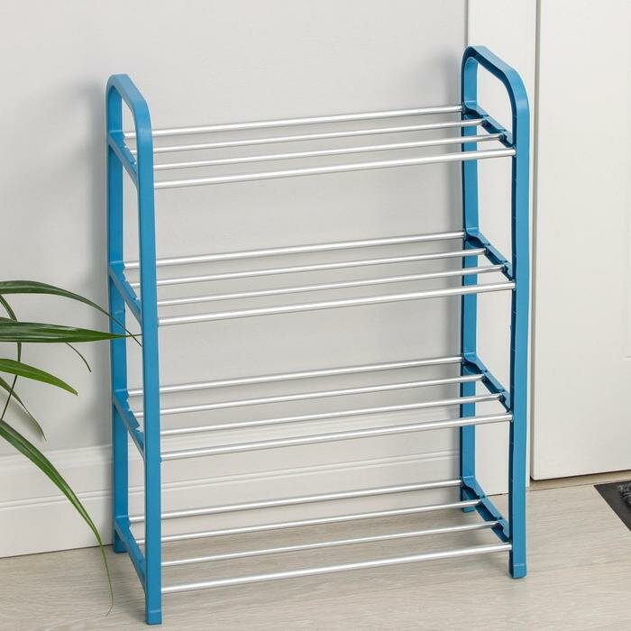 Купить Доляна Полка для обуви Доляна, 4 яруса, 42×19×60 см, цвет синий