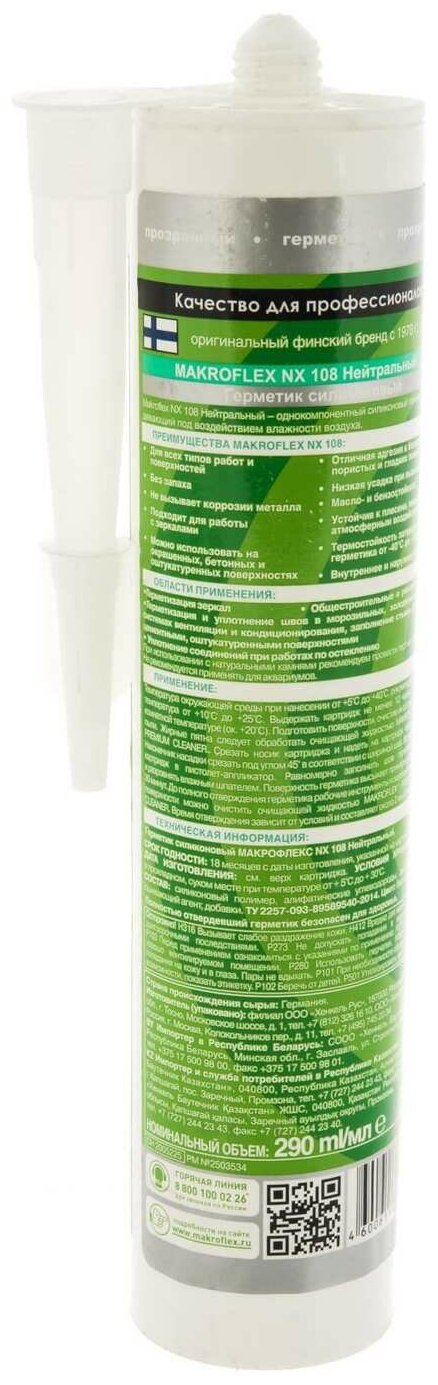 Герметик силиконовый нейтральный Makroflex NX108, 290 мл, прозрачный