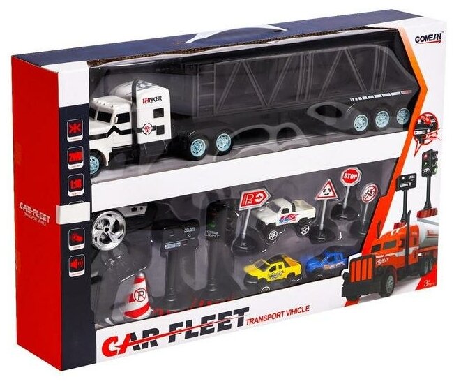 Купить Грузовик радиоуправляемый КНР "Автовоз", с машинками, светофором и дорожными знаками ZY1154304