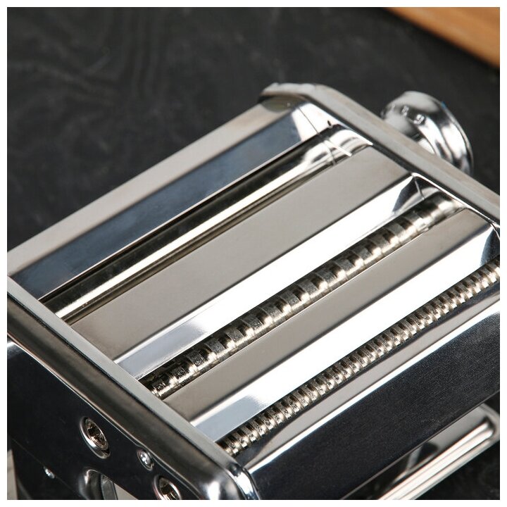 Лапшерезка-тестораскатка ручная Доляна, 6 настроек толщины теста, ширина лапши 2 и 5 мм, нержавеющая сталь