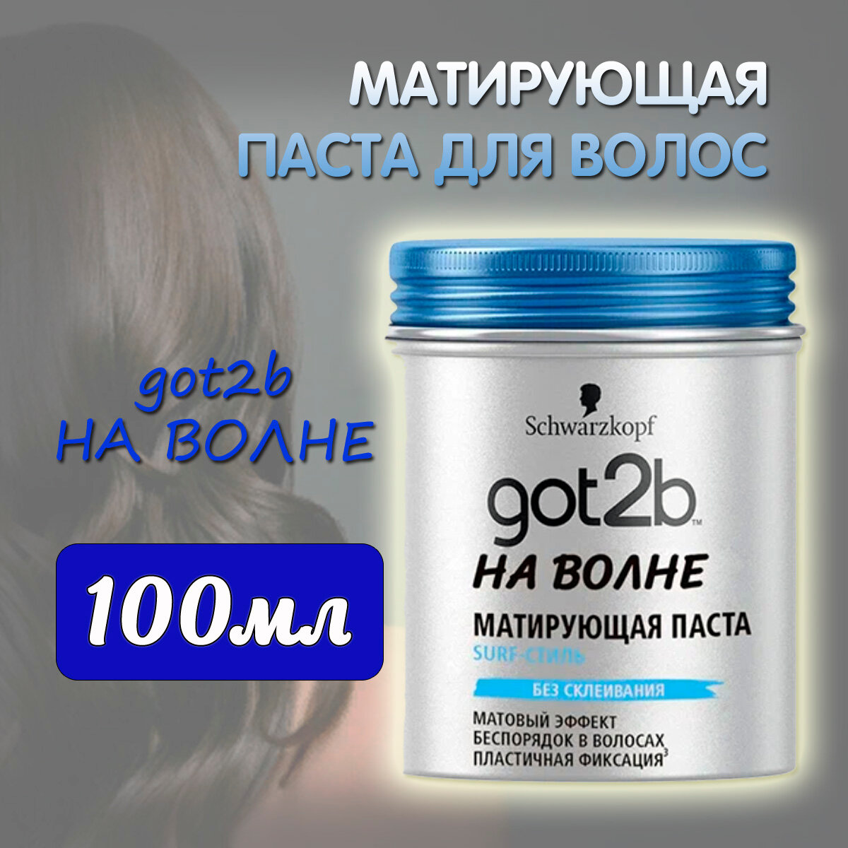 Got2b Матирующая паста для укладки волос "На волне", без склеивания, матовый эффект, пластичная фиксация 3, 100 мл