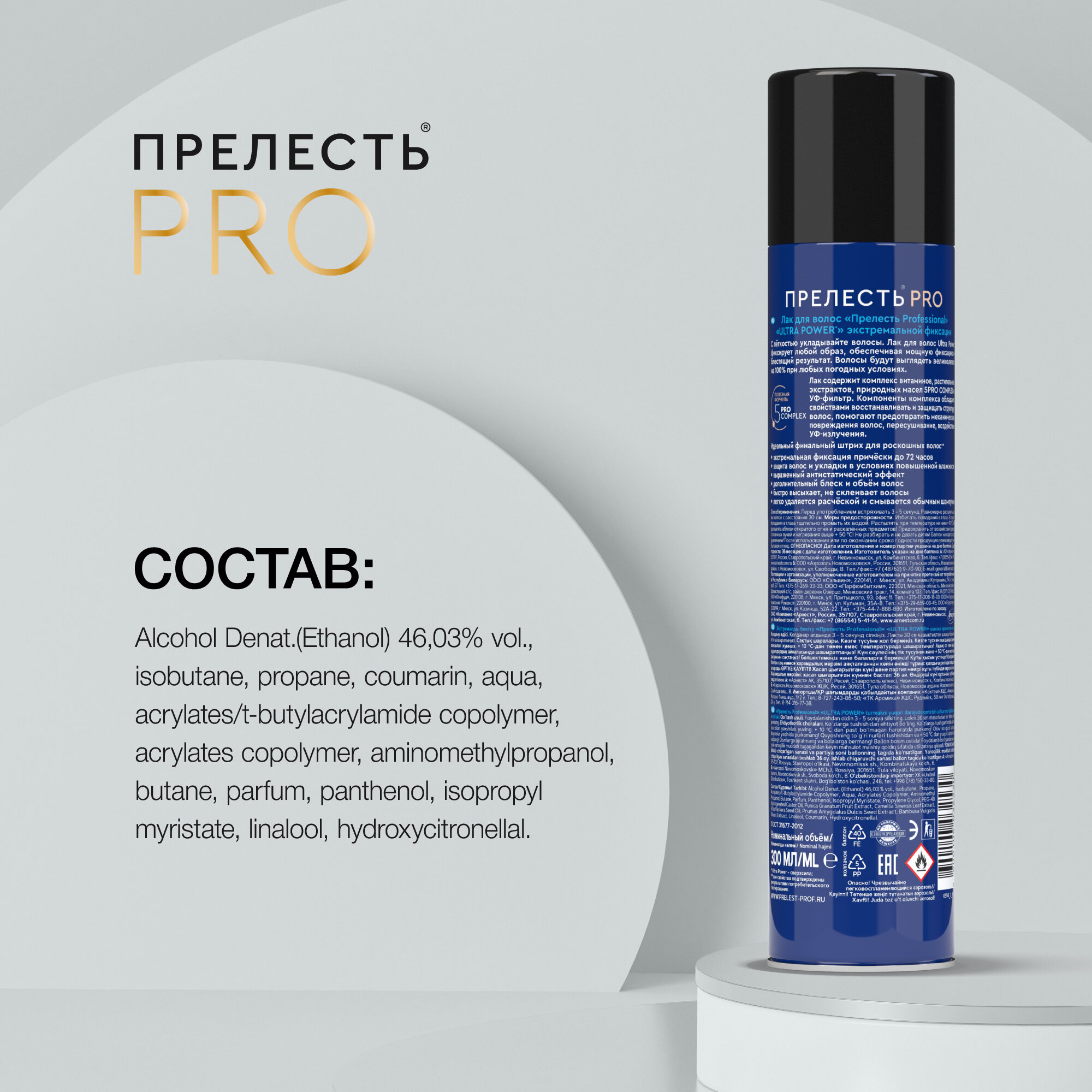Лак для волос прелесть PRO ULTRA POWER экстремальной фиксации 300 см3