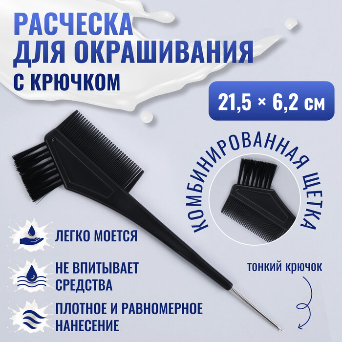 Расчёска для окрашивания, с крючком, 21,5 × 6,2 см, цвет чёрный интересное: