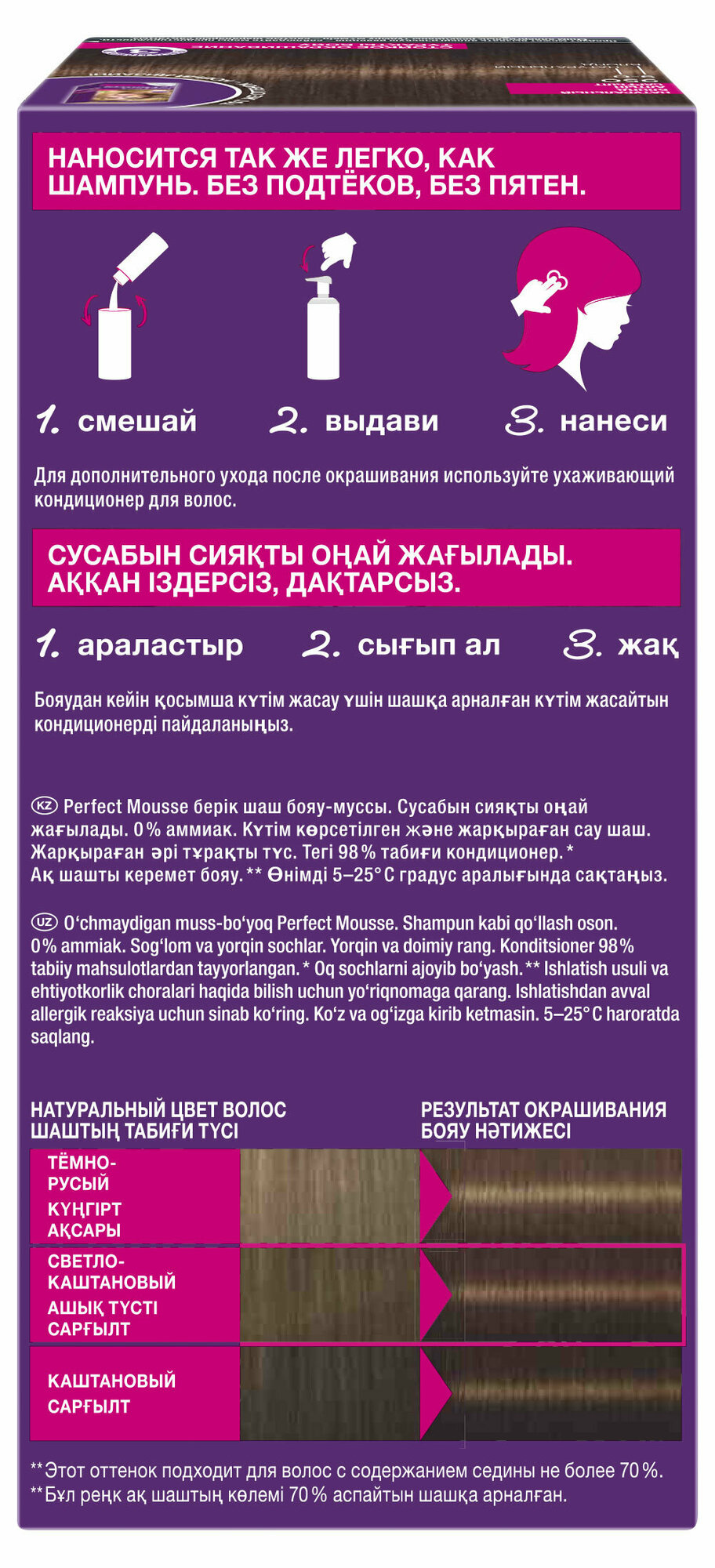 Perfect Mousse стойкая краска перфект мусс для волос, 600, Светлый каштан, 35 мл