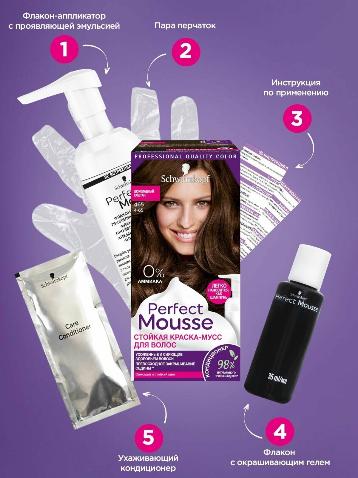 Стойкая краска-мусс для волос без аммиака Perfect Mousse 465 Шоколадный каштан, 92,5 мл