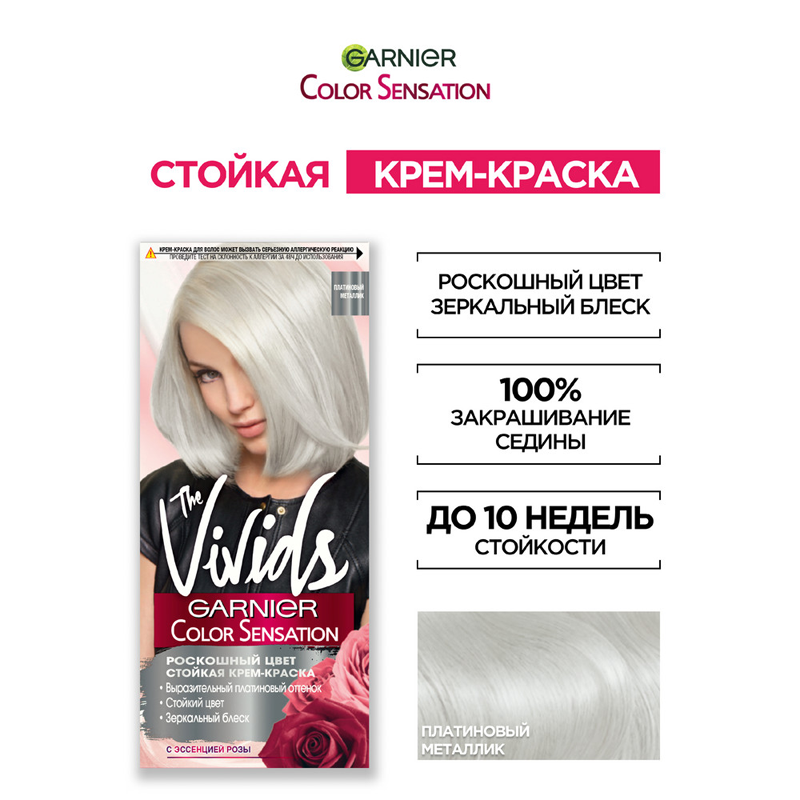 Крем-краска для волос Garnier Color Sensation The Vivids, с перламутром и эссенцией розы, Платиновый металлик