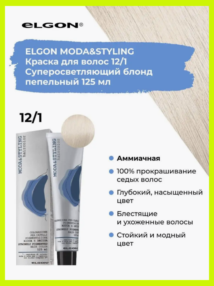 Купить Крем-краска Elgon Moda&Styling 12/1 Суперосветляющий блонд Пепельный 125 мл