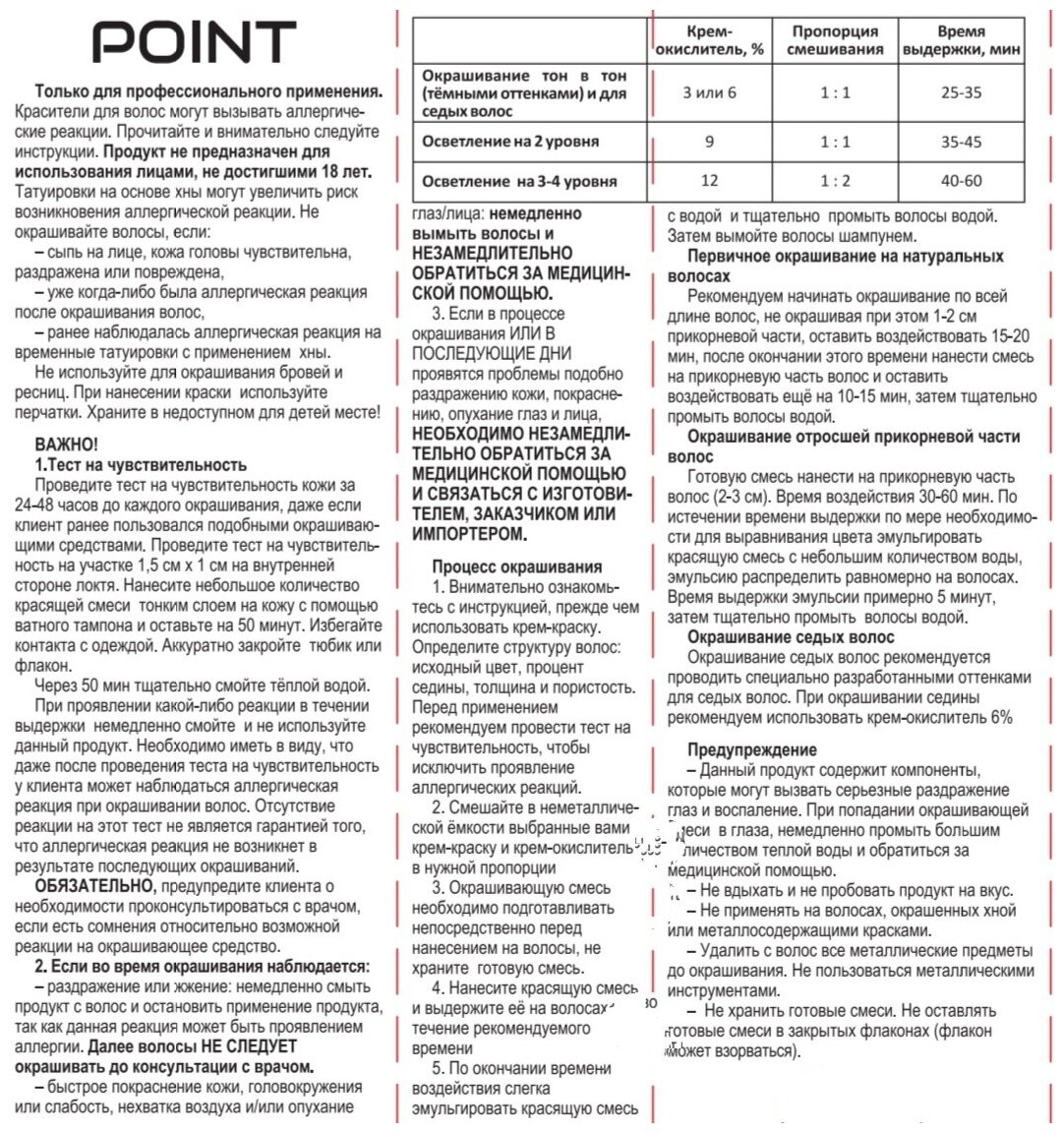 POINT., промо Краска для волос для проф.прим., тон №1.0, Чёрный + 6% оксид, 100/100мл
