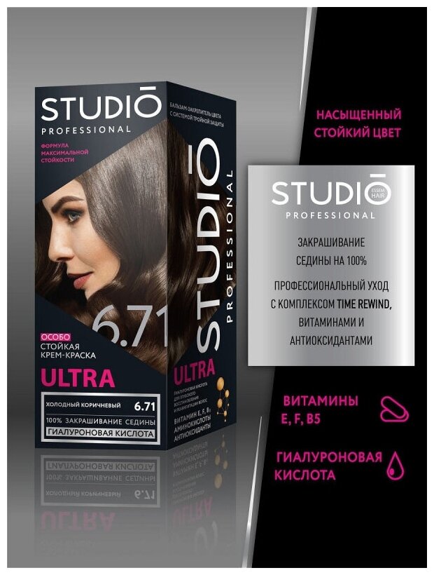 Купить Стойкая крем-краска для седых волос STUDIO PROFESSIONAL ULTRA тон 6.71 Холодный коричневый