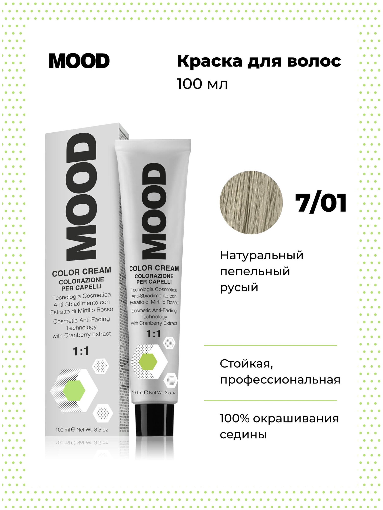Купить Крем-краска Mood 7/01 Блонд Натуральный пепельный 100 мл