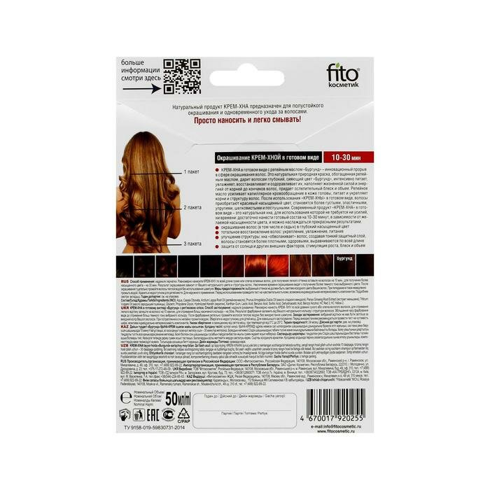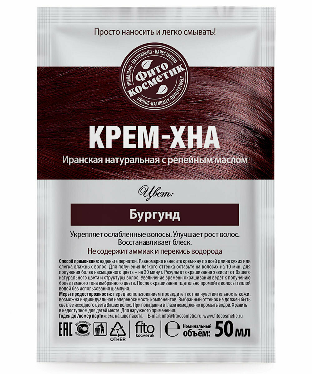 Fito косметик Крем-хна иранская натуральная с репейным маслом в готовом виде цвет бургунд, 50 мл