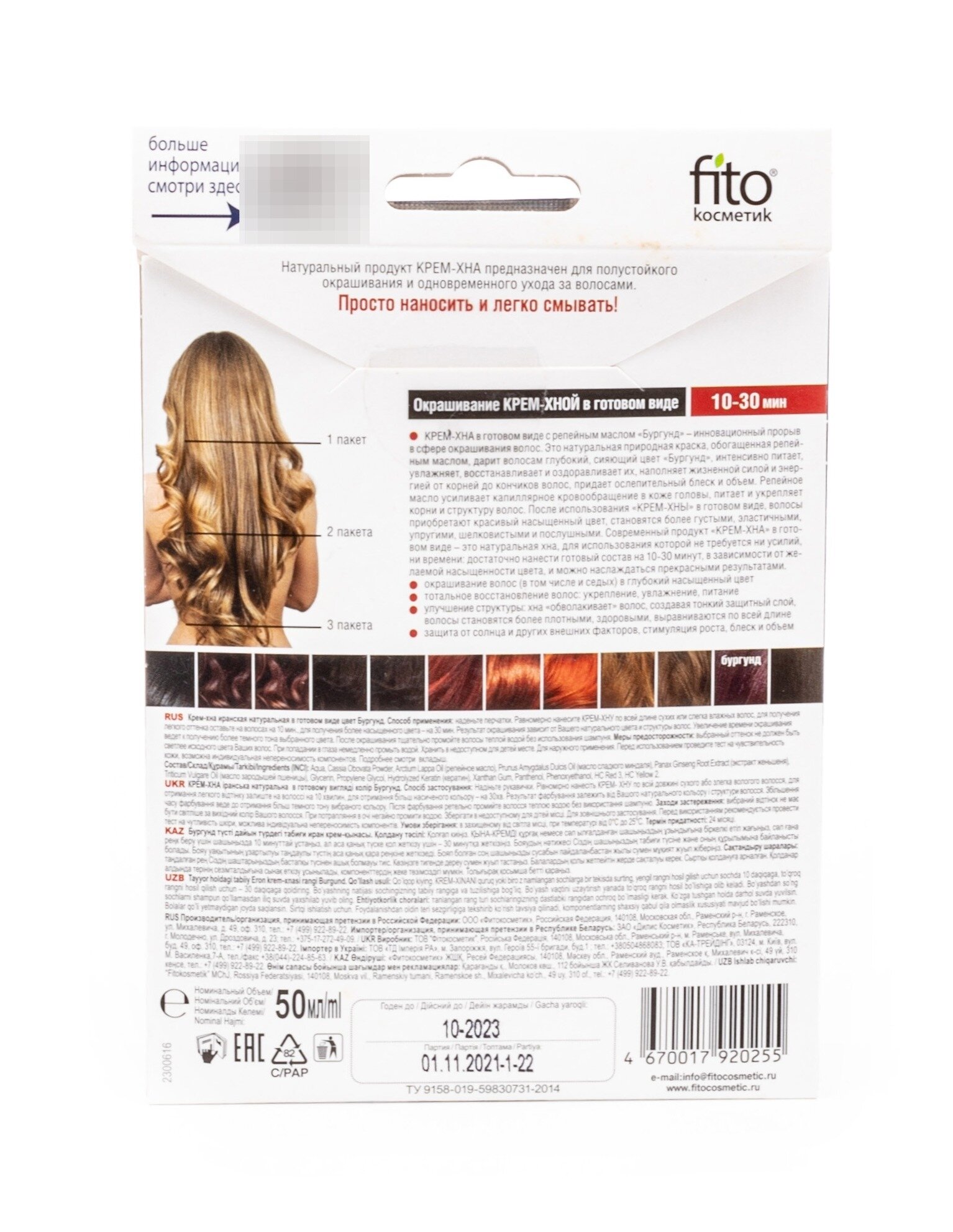 Fito Косметик Крем-Хна в готовом виде Бургунд с репейным маслом, 50 мл