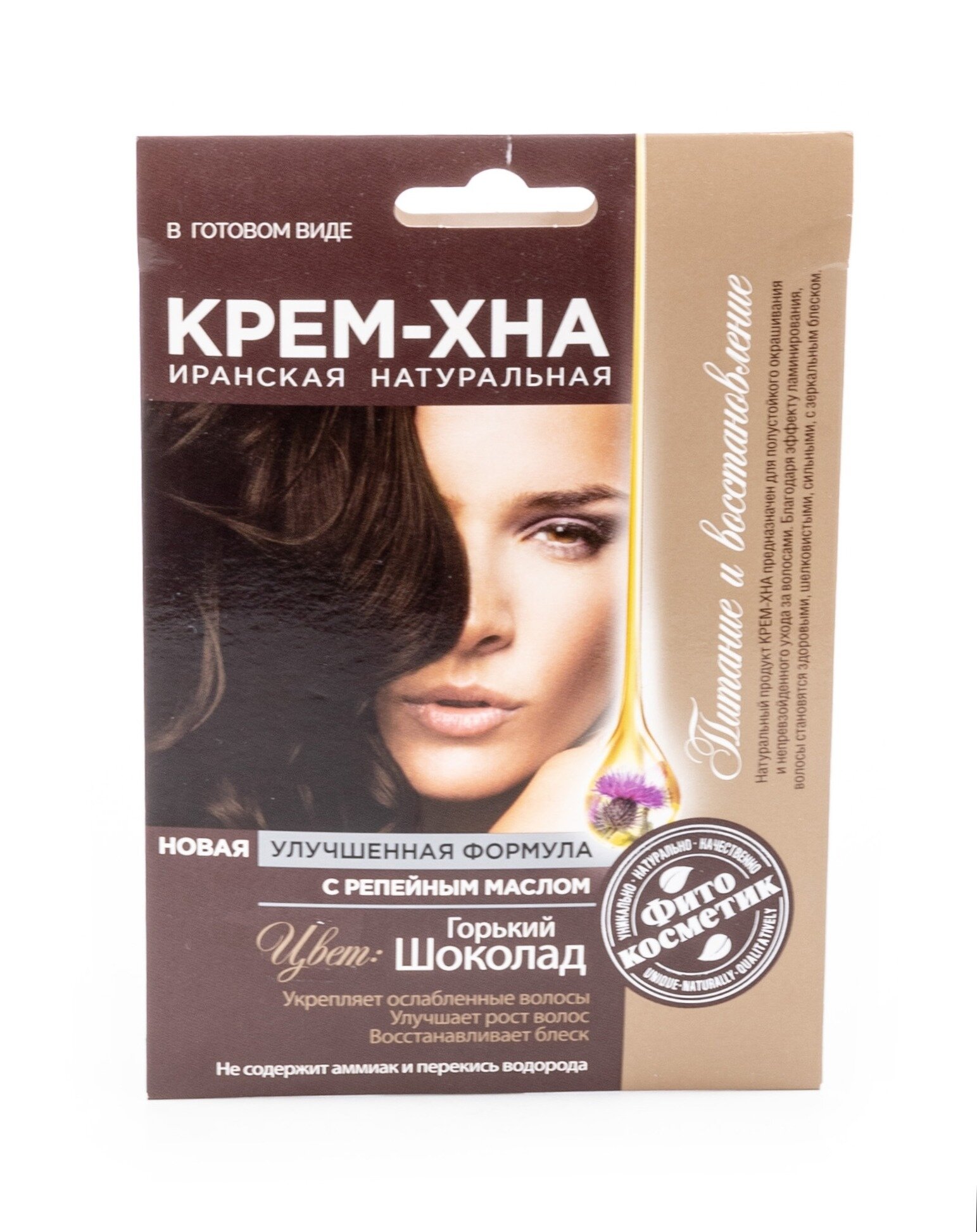 Крем-Хна в готовом виде "Горький шоколад" с репейным маслом, саше фитокосметик 50 мл