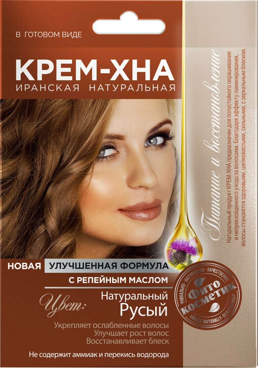 Крем-хна FITO косметик Иранская с репейным маслом Натуральный русый, 50мл