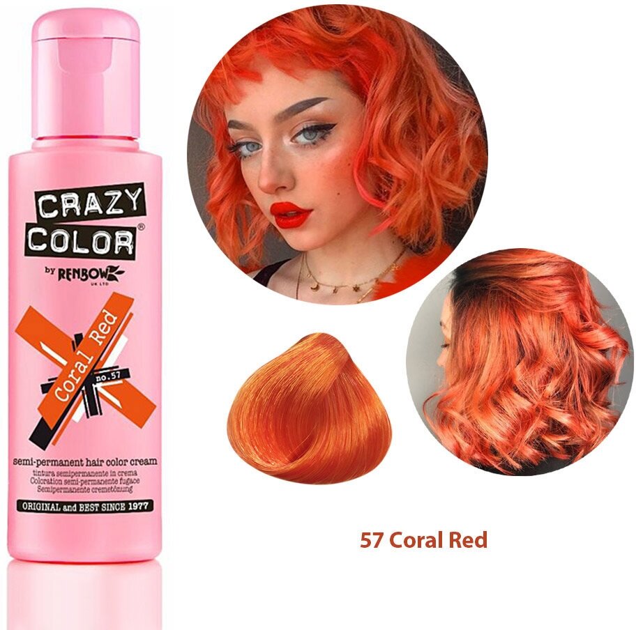 Купить CRAZY COLOR Яркая краска, пигмент прямого действия, коралловый/57, 100 мл