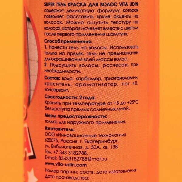 Купить VITA UDIN Гель-краска для волос VITA UDIN, оранжевая, 50 мл