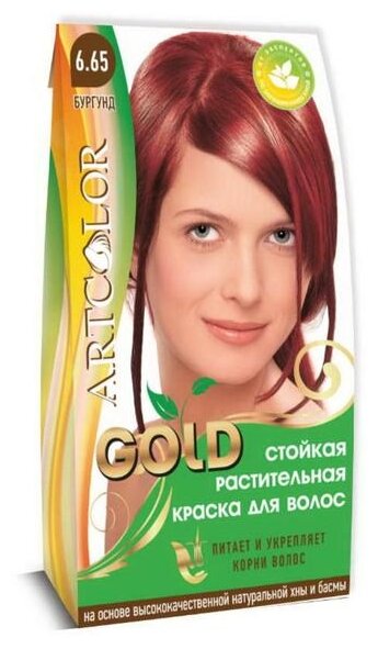 Артколор Gold Краска для волос тон 6.65 бургунд на основе натуральной хны без аммиака 25г / красящее средство