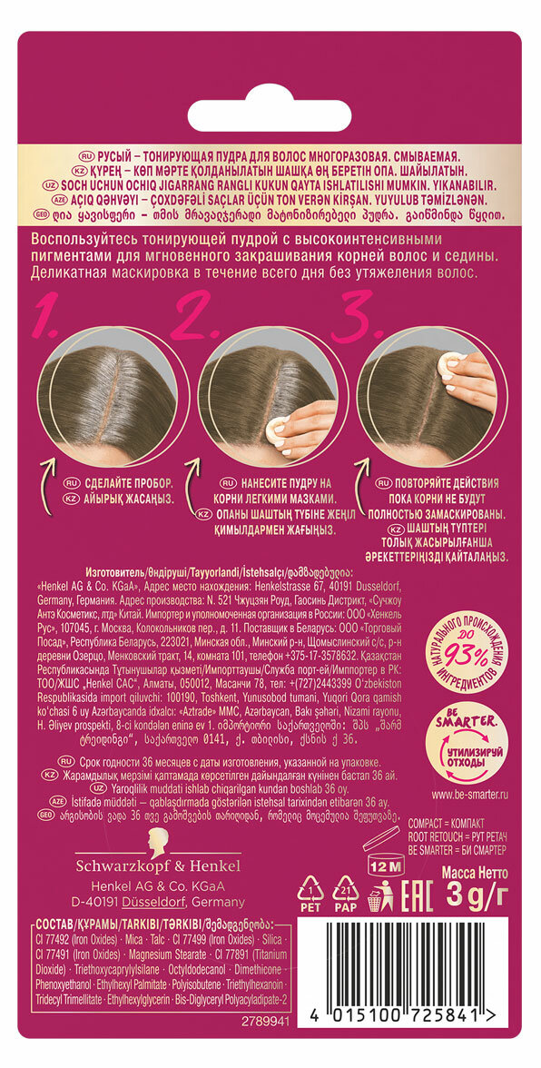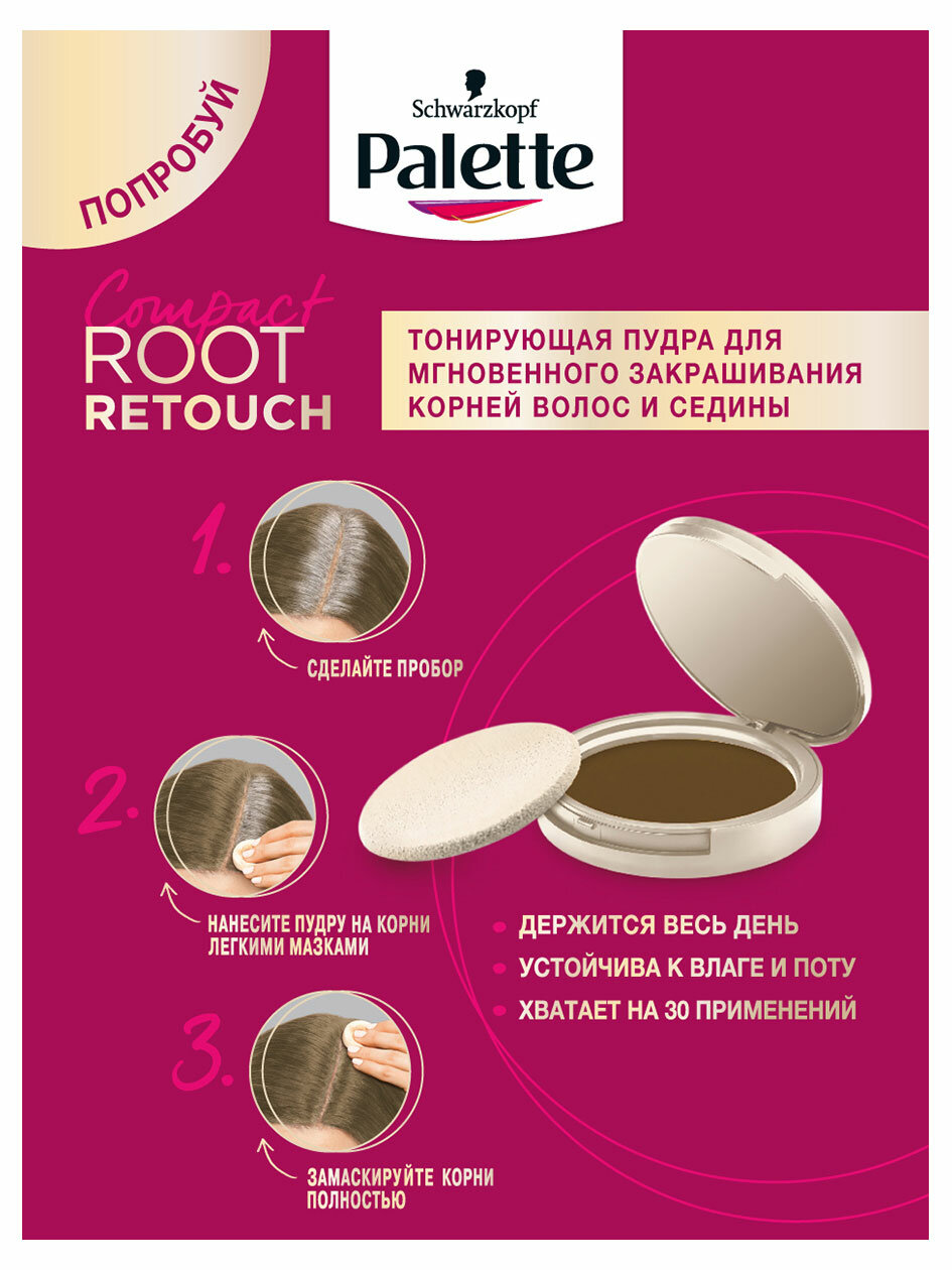 Palette Тонирующая пудра Root Retouch, Русый, для закрашивания корней и седины, 3 г