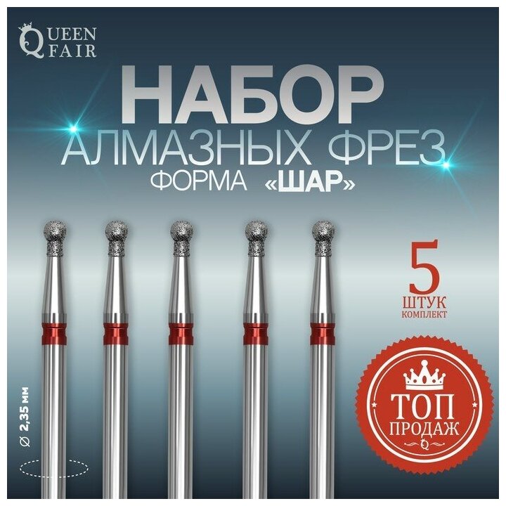 Queen fair Фрезы алмазные для маникюра «Шар», мелкая зернистость, 2,1 мм, 5 шт интересное: