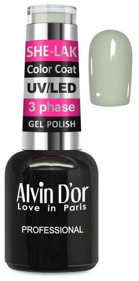 Alvin D'or, Гель лак для ногтей SHE-LAK Сolor Coat тон 35118 серо-голубый