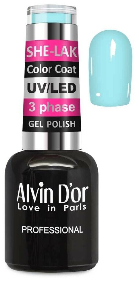 Alvin D'or, Гель лак для ногтей SHE-LAK Сolor Coat тон 3598 тифани
