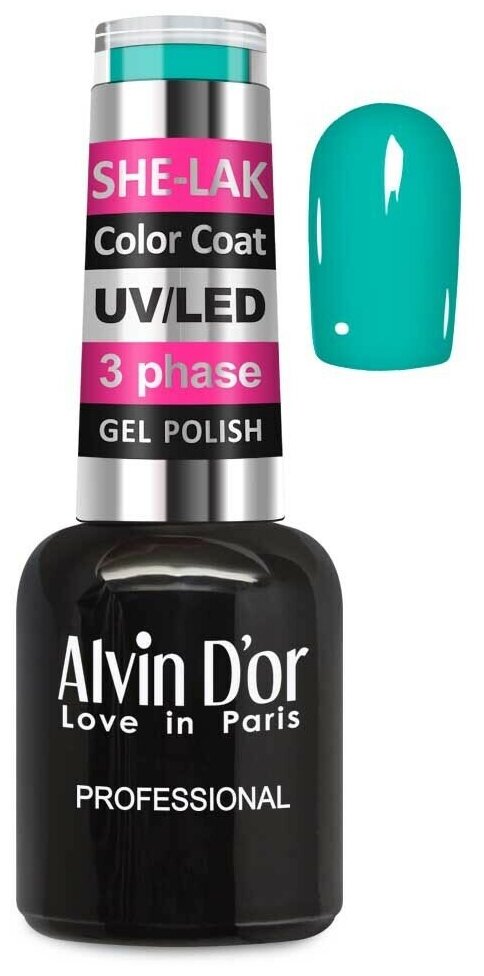 Alvin D'or, Гель лак для ногтей SHE-LAK Сolor Coat тон 3598 тифани